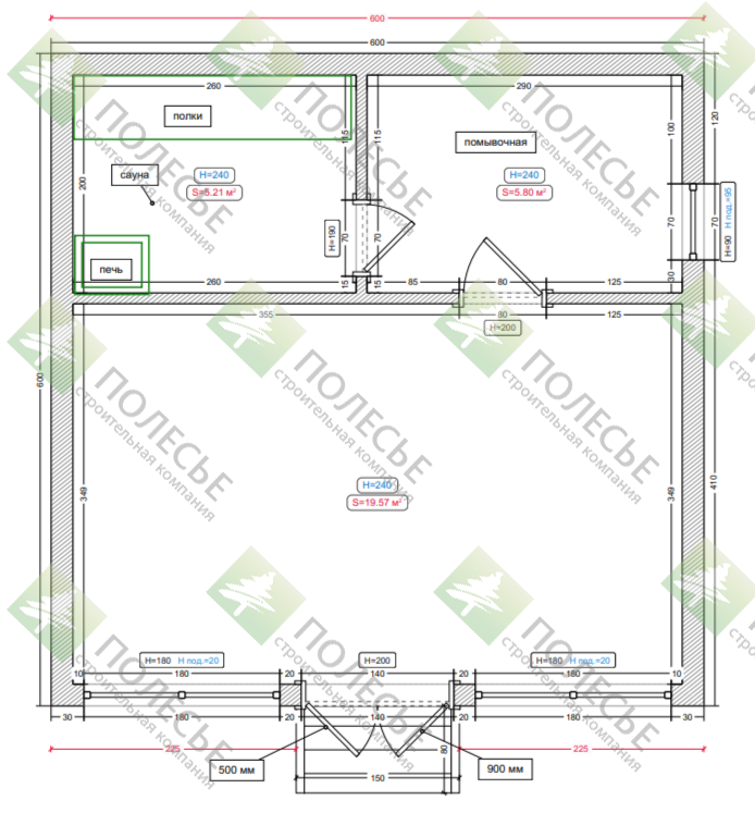 Окна: 1800*1800-2шт, 1000*1000-1шт, входная группа 1400х2000-1шт, 500*500-1шт, 700*900-1шт