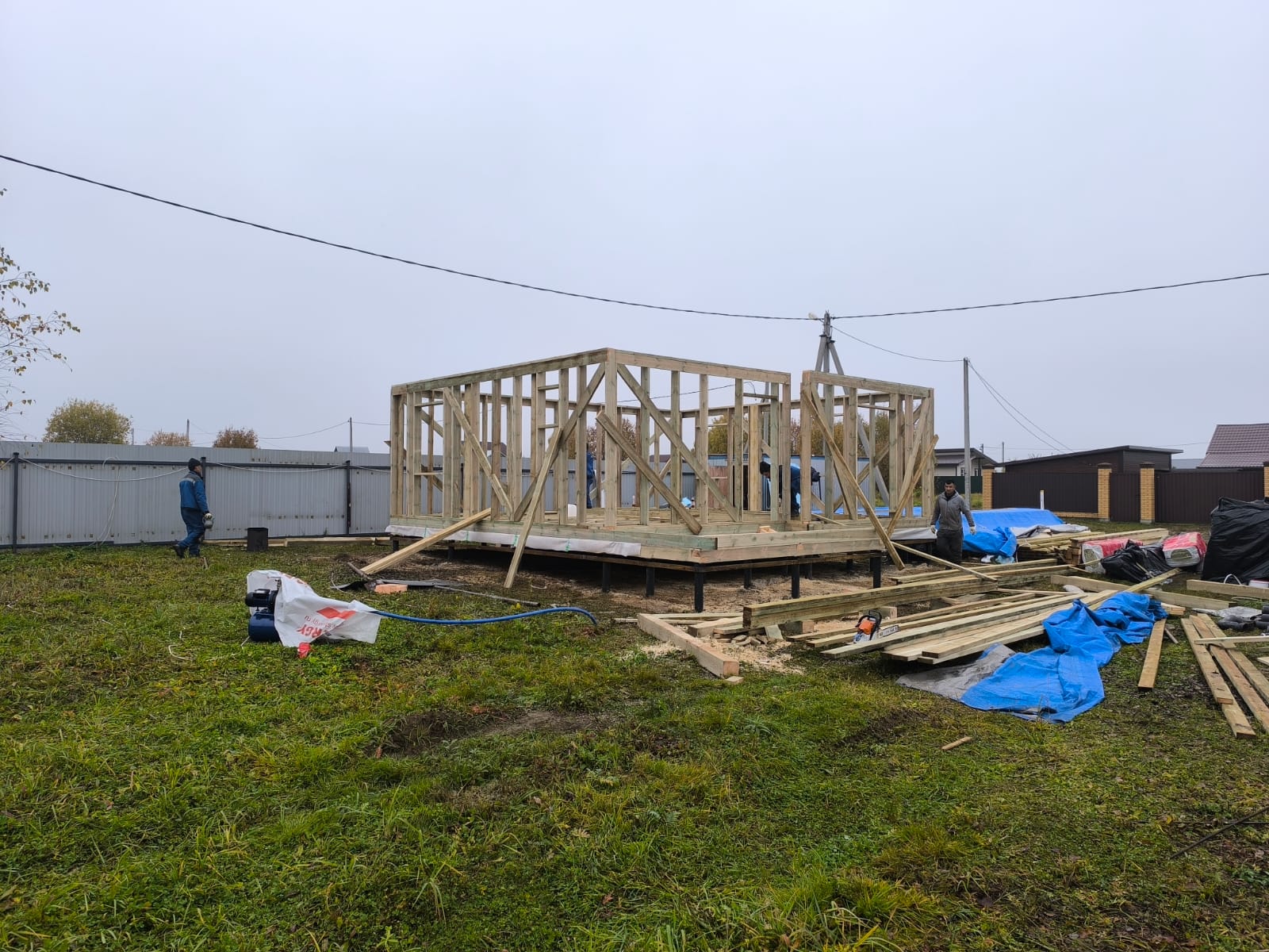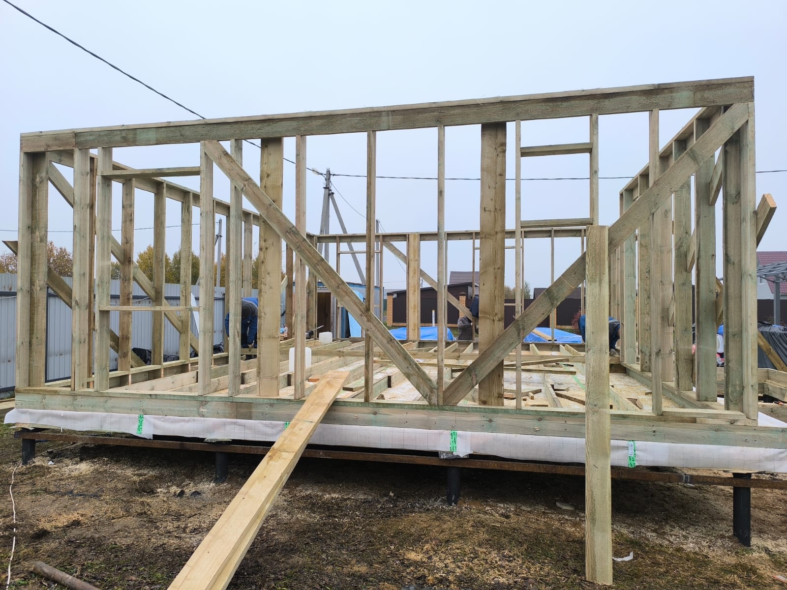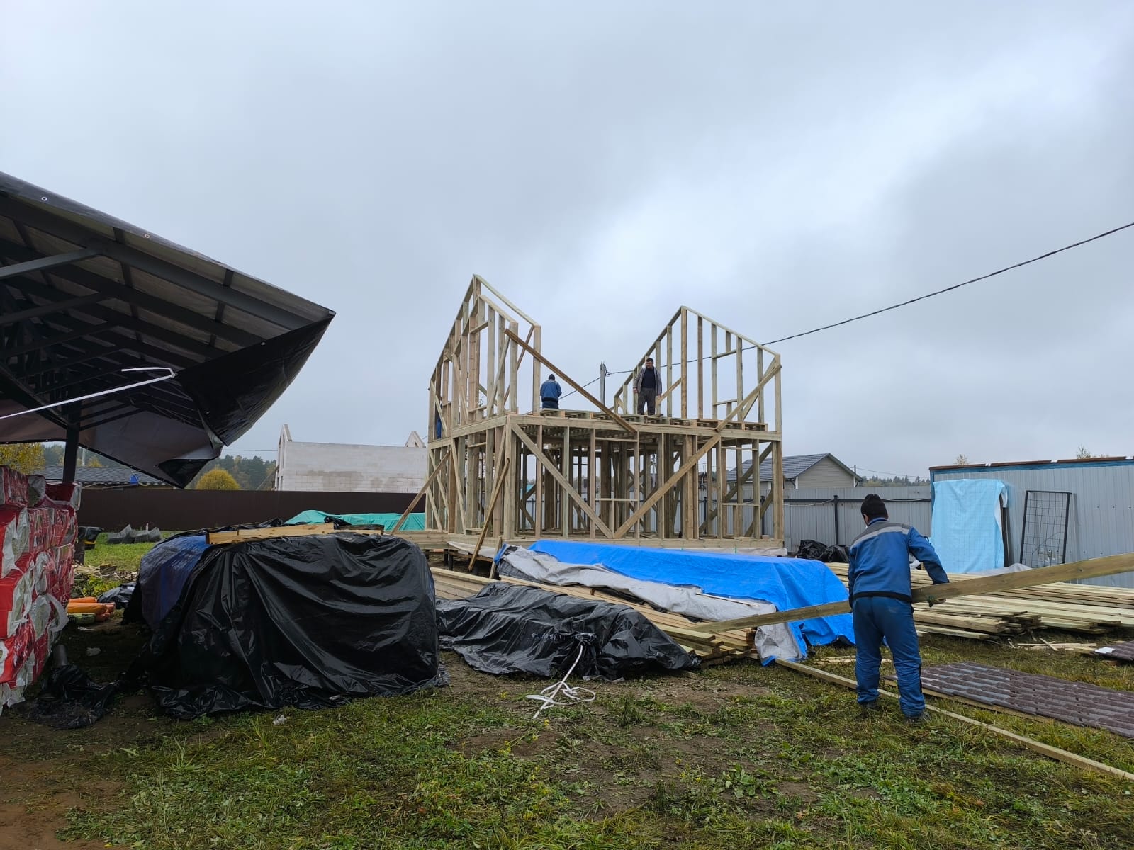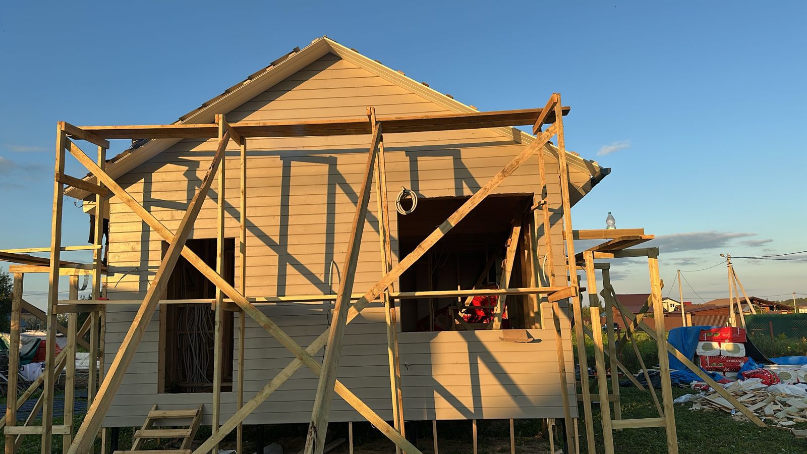 Сегодня завершилось строительство нашего дома. Изначально долго выбирали компанию для строительства дома, но объездив очень много организаций и получив около 20 расчётов от разных компаний все таки решили остановиться на компании "Полесье" - нас устроила цена, материалы, сроки и организация работы, отдельное спасибо нашему менеджеру Юлии - на всех этапах работы нам показывала всю необходимую поддержку и главное на простом понятном, доступном языке. Все оговорённые суммы и сметы были соблюдены с ювелирной точностью, ни на одном из этапов не было и намёка на дополнительные платы. После заключения договора ушло около месяца на подготовку материалов заказа нестандартных позиций. По готовности домокомлекта, точно в оговорённое время и срок к нам приехала бригада из 5 человек и все необходимые материалы.