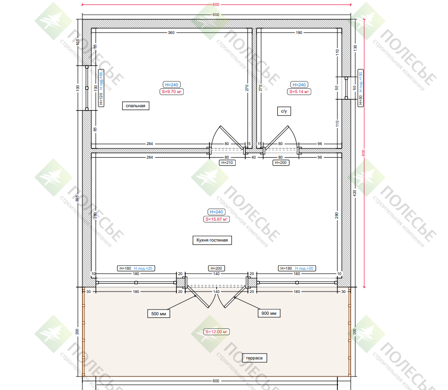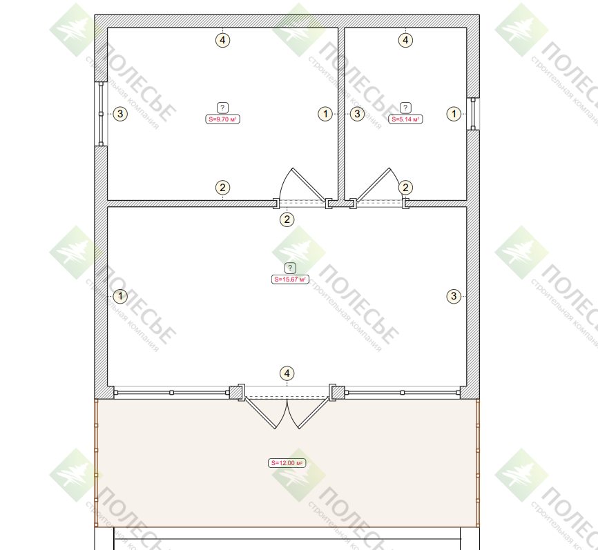 Окна: 1800*1800-2 шт, 1000*1000-2 шт, входная группа 1400х2000-1 шт