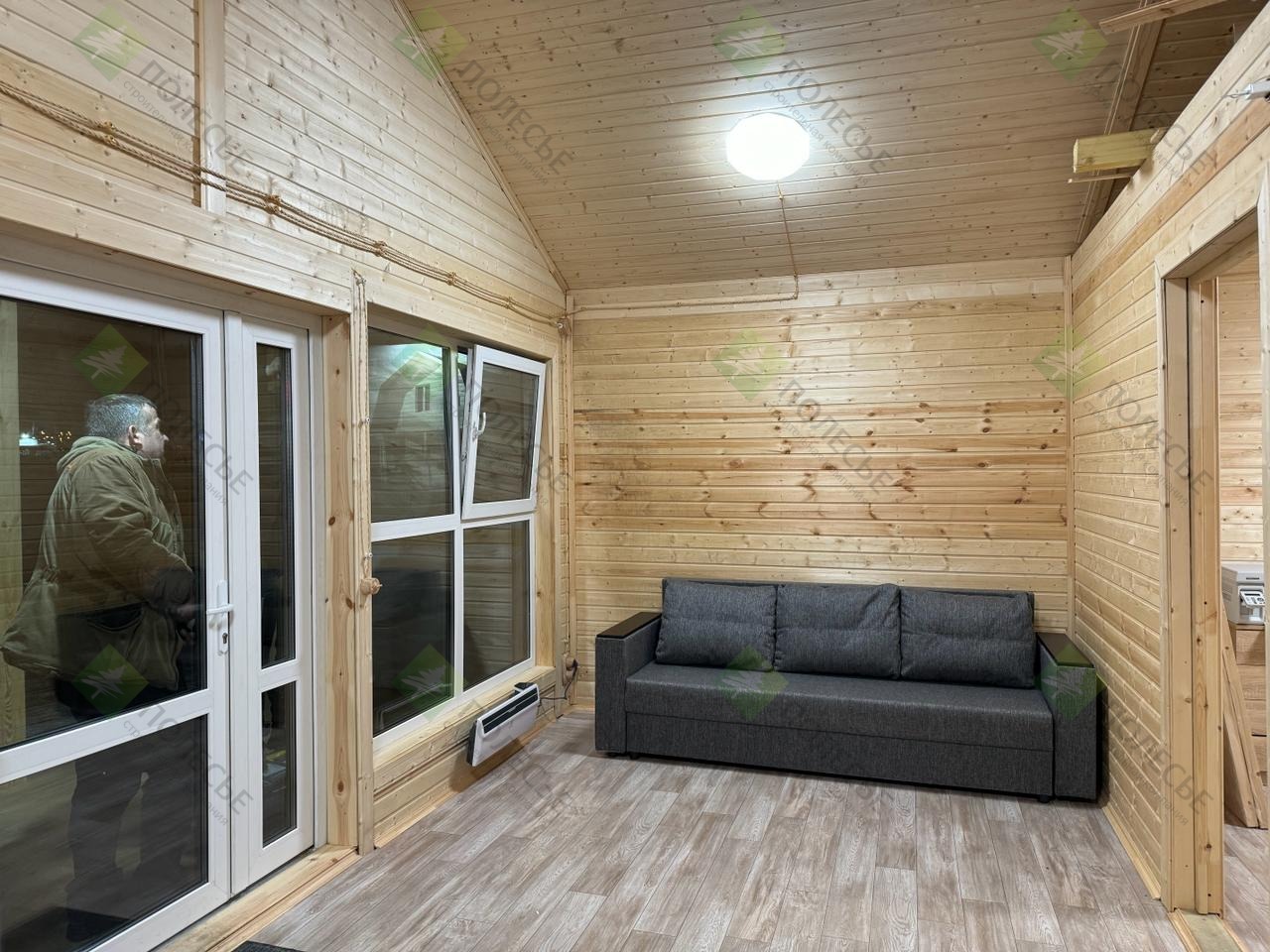 Каркасно-щитовые. По стенам подшита евровагонка класса AB по паро-гидроизоляции с двух сторон. Утепление-100мм.