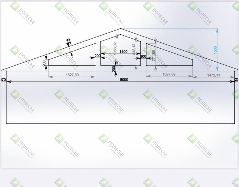 Окна: 700х900-1 шт, 900*1800-2 шт, 1800*1800-3 шт, треугольники во фронтон 3300*780-1 шт, входная группа 1400х2000-1 шт