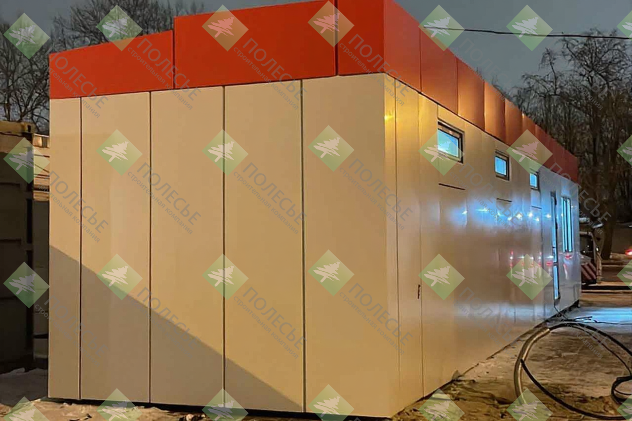 Нижняя рама - горячекатанный швеллер 120х50х5 с дополнительными усилениями из профильной трубы. Верхняя рама - горячекатанный швеллер 120х50х5 с дополнительными усилениями из профильной трубы. Угловые стойки - уголок 125х8. Каркас каждого блок модуля является сборно-разборным. Между собой монтируются на болтовом соединении. Болты и гайки применяемые при монтаже из каленого металла повышенной прочности. Каркас каждого блок модуля при производстве проходит обработку, зачищен, загрунтован и полностью окрашен