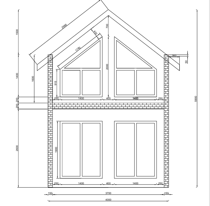 Окна: 500х500-1шт, 1000х1200-4шт, 1400*1600-2шт, 1400*1600 (со скосом)-2шт, 1400*1800-2шт, 1400*1800 (со скосом)-2шт, входная дверь 800*2000-2шт